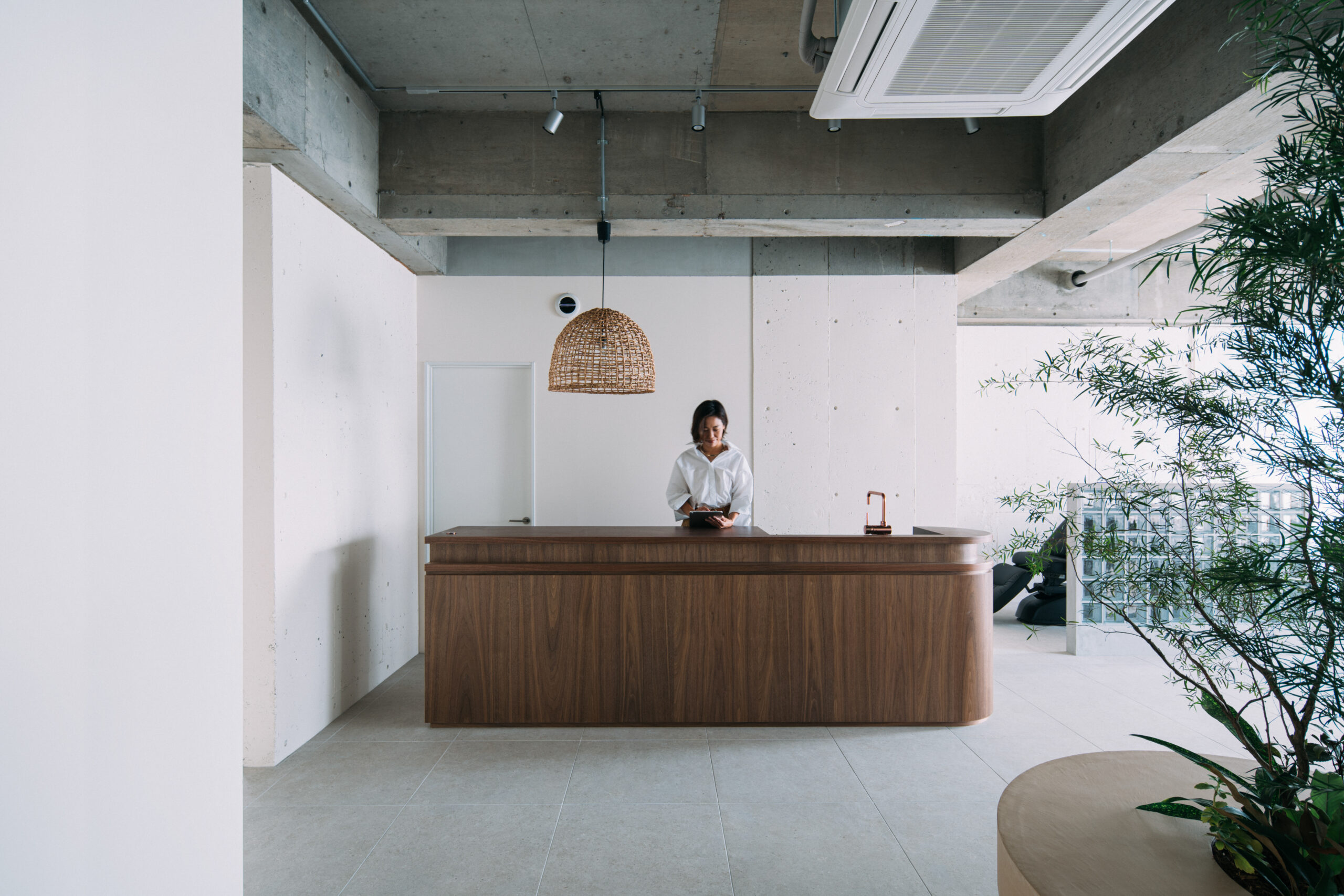 光の抜けと樹形のやわらかな陰影でやさしく空間にとけ込むように設計しています。